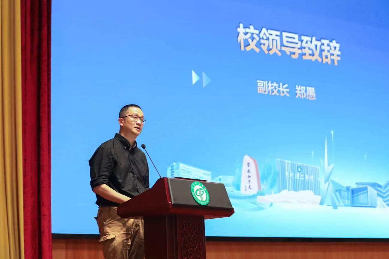郑愚为开幕式致辞。他以校园中热烈绽放的凤凰木为喻,向莅临现场的嘉宾表示欢迎,向全体师生致以问候,并细数了学校研究生教育近年来在科研论文发表、学科竞赛获奖以及创新成果产出等多个领域所取得的累累硕果。他指出,学术活动节从最初的学术活动周、学术活动月发展至今,已成为学校学术日历上的重要亮点。这既是青春智慧璀璨绽放的舞台,为研究生搭建了展示创新成果的亮丽窗口;也是促进学科交叉融合的宝贵契机,能够激发新颖独特的创新思路;更是前沿思潮激烈碰撞的平台,让师生得以领略最前沿的学术思想与方法,同时,它也是一次全面检阅并展示学校研究生培养成果的重要契机。他鼓励研究生们积极参与活动,主动交流碰撞,在学术探索中锤炼自我。