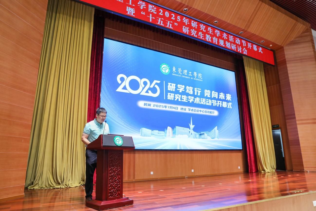 7月4日上午,东莞理工学院2025年研究生学术活动节开幕式在松山湖校区学术会议中心多功能厅隆重举行。此次活动节以“研学笃行,莞向未来”为主题,分两个阶段进行。国家级重大人才工程入选者中山大学国际金融学院院长黄新飞,国家级重大人才工程入选者电子科技大学教授宫玉彬,广东财经大学研究生院院长晏宗新,汕头大学研究生院院长杜虹,电子科技大学研究生院副处长田蜜,华南师范大学研究生院副院长黄锐,以及学校副校长郑愚,研究生院、各培养单位负责人,导师代表和研究生代表等,共同见证了这场学术盛宴的开启。