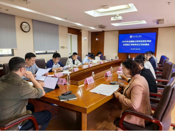 12月12日,为全面部署2026年全国硕士研究生招生考试东莞理工学院考点各项工作,确保考试安全、平稳、有序进行,我校召开2026年全国硕士研究生招生考试考点工作协调会。副校长郑愚出席会议,党政办公室、研究生院、教务部(招生办公室)、宣传部、学生工作部、安全保卫部、现代教育技术中心、总务后勤部、团委等部门负责人及相关工作人员参加了会议。