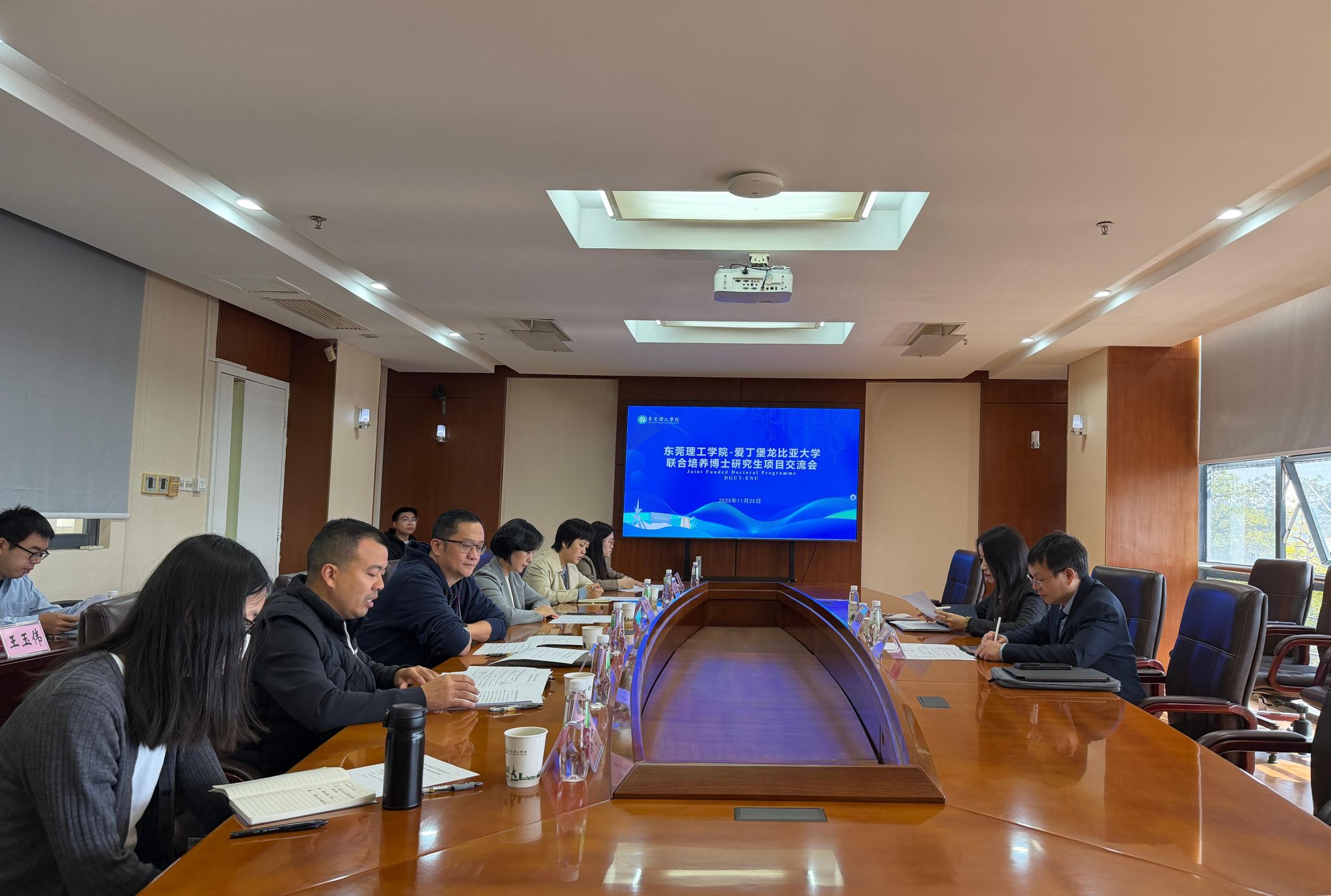 2025年11月25日上午,我校与英国爱丁堡龙比亚大学在学校松山湖校区举行联合培养博士研究生项目交流会。副校长郑愚、东莞理工学院法国国立工艺学院联合学院党委书记、副院长尹玲,英国爱丁堡龙比亚大学计算机、工程与建筑环境学院副院长Johnson Zhang,中国办公室主任Carina Liao,以及学校部分导师代表、相关项目负责人出席会议,研究生院副院长沈飞主持本次交流会。